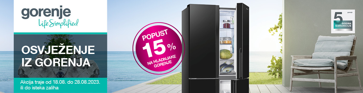 Ostvarite 15% popusta na hladnjake, usisavače te uređaje za pripremu hrane Gorenje uz promo kod gorenje15!*
