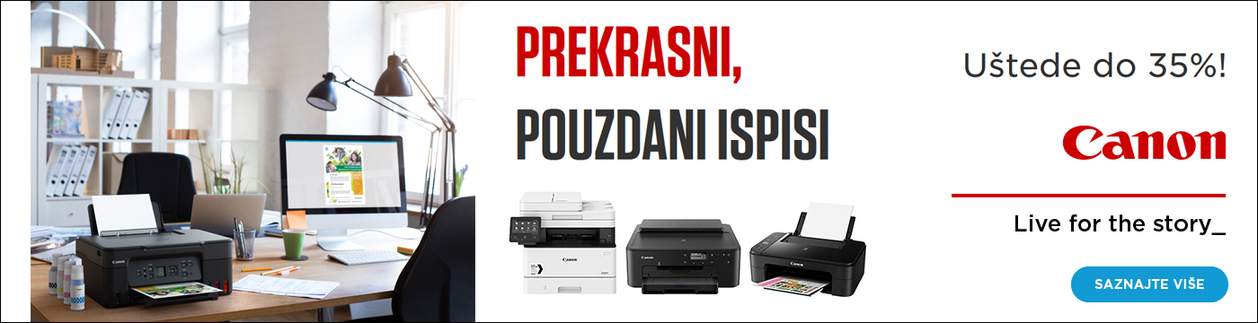 Ostvarite do 35% popusta na odabrane Canon pisače i skenere PREKRASNI, POUZDANI ISPISIOstvarite do 35% popusta na odabrane Canon pisače i skenere u periodu od 15.06. do 15.07.2023. ili do isteka zaliha. Proizvodi u promociji: Trenutno nije raspoloživo. Laserski printer Canon i-SENSYS LBP233dw 33ppm Wi-Fi mobile print mono 250,00€ Dodatnih 3% uz promo kod Dodaj u košaricu Usporedi Ukloni Favorit obriši favorit Raspoloživo uz narudžbu. Laserski printer Canon i-SENSYS LBP236dw 38ppm Wi-Fi duplex mobile print mono 307,00€ Dodatnih 3% uz promo kod Dodaj u košaricu Usporedi Ukloni Favorit obriši favorit Raspoloživo odmah! Inkjet printer Canon Pixma G1420 CISS Tank 99,00€ Dodatnih 3% uz promo kod Dodaj u košaricu Usporedi Ukloni Favorit obriši favorit Raspoloživo odmah! Inkjet printer Canon Pixma G3470 CISS Tank crveni 189,00€ Dodatnih 3% uz promo kod Dodaj u košaricu Usporedi Ukloni Favorit obriši favorit Raspoloživo odmah! Inkjet printer Canon Pixma G3470 CISS Tank crni 189,00€ Dodatnih 3% uz promo kod Dodaj u košaricu Usporedi Ukloni Favorit obriši favorit Raspoloživo odmah! Multifunkcijski inkjet printer Canon MAXIFY MB2150 WiFi FAKS ADF LCD duplex Cloud 4u1 199,00€ Dodatnih 3% uz promo kod Dodaj u košaricu Usporedi Ukloni Favorit obriši favorit Raspoloživo uz narudžbu. Multifunkcijski inkjet printer Canon MAXIFY MB2750 WiFi LAN FAKS ADF LCD-touch duplex Cloud 4u1 237,99€ Dodatnih 3% uz promo kod Dodaj u košaricu Usporedi Ukloni Favorit obriši favorit Raspoloživo uz narudžbu. Multifunkcijski inkjet printer Canon Pixma TS5150 WiFi 3u1 crni 92,77€ Dodatnih 3% uz promo kod Dodaj u košaricu Usporedi Ukloni Favorit obriši favorit Raspoloživo odmah! Printer inkjet Canon Pixma TS705A A4 WiFi duplex CD 5-tinti 109,99€ Dodatnih 3% uz promo kod Dodaj u košaricu Usporedi Ukloni Favorit obriši favorit Raspoloživo uz narudžbu. Multifunkcijski inkjet printer Canon Pixma TS5353 WiFi 3u1 A4 LED status OLED display zeleni 92,77€ Dodatnih 3% uz promo kod Dodaj u košaricu Usporedi Ukloni Favorit obriši favorit Raspoloživo uz narudžbu. Multifunkcijski inkjet printer Canon Pixma TS3450 WiFi Cloud LCD Creative Park 3u1 crni 83,48€ Dodatnih 3% uz promo kod Dodaj u košaricu Usporedi Ukloni Favorit obriši favorit Raspoloživo odmah! Multifunkcijski inkjet printer Canon Pixma TR4651 WiFi ADF LCD Cloud FAKS 4u1 bijeli 86,14€ Dodatnih 3% uz promo kod Dodaj u košaricu Usporedi Ukloni Favorit obriši favorit Raspoloživo odmah! Skener Canon CanoScan LiDE 300 CIS 2400x4800dpi 9sec 48-bit A4 89,00€ Dodatnih 3% uz promo kod Dodaj u košaricu Usporedi Ukloni Favorit obriši favorit Raspoloživo odmah! Skener Canon CanoScan LiDE 400 CIS 4800x4800dpi 7sec 48-bit A4 115,00€ Dodatnih 3% uz promo kod Dodaj u košaricu Usporedi Ukloni Favorit obriši favorit Raspoloživo odmah! Multifunkcijski laserski printer Canon i-SENSYS MF267dw II A4 38ppm WiFi LAN ADF Faks duplex LCD-touch mono 480,00€ Dodatnih 3% uz promo kod Dodaj u košaricu Usporedi Ukloni Favorit obriši favorit Raspoloživo odmah! Multifunkcijski laserski printer Canon i-SENSYS MF754Cdw A4 33ppm ADF FAX WiFi LCD-touch color 479,00€ Dodatnih 3% uz promo kod Dodaj u košaricu Usporedi Ukloni Favorit obriši favorit