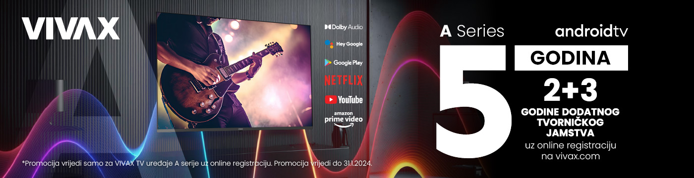 2+3 godine tvorničkog jamstva na sve VIVAX SMART TV uređaje A Serije kupljene u razdoblju od 24.11.2023. do 31.1.2024.
