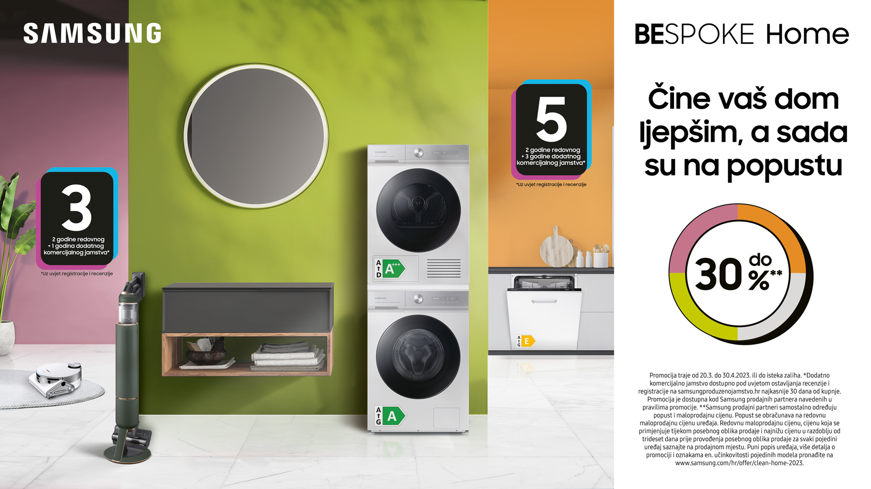 Iskoristite ovu nevjerojatnu priliku i obogatite svoj dom fantastičnim Bespoke Home uređajima i dodatno uštedite do čak 30%.