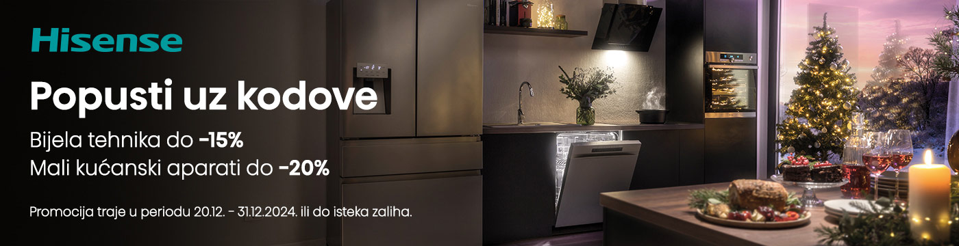 Ostvarite do 23% popusta na odabrani asortiman Hisense kućanskih aparata i bijele tehnike uz promo kod*!