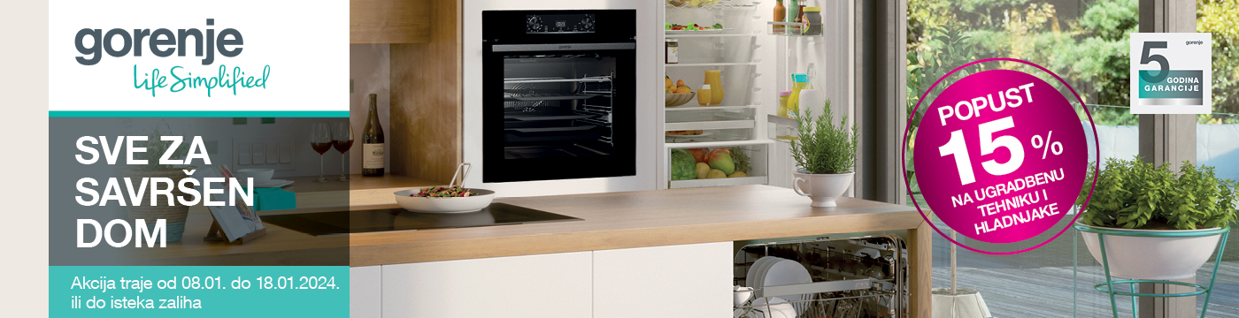 Ostvarite 15% popusta na odabrani asortiman ugradbene tehnike i hladnjake te 20% popusta na program pranja i sušenja, usisavače i mikrovalne pećnice Gorenje!