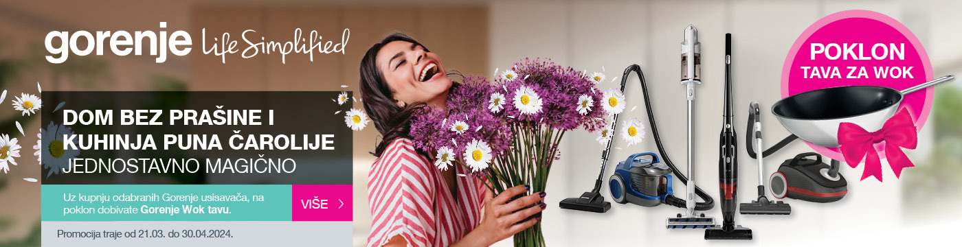 U periodu od 21.03. do 30.04.2024. uz kupnju svakog od odabranih modela Gorenje usisavača na poklon dolazi Gorenje Wok tava. Proljetno čišćenje nikad nije bilo zabavnije!