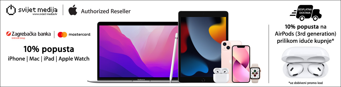 Uz ZABA Mastercard® karticu kupite Apple uređaj s 10% popusta i dobivate vaučer 10% za AirPods (3rd generation)