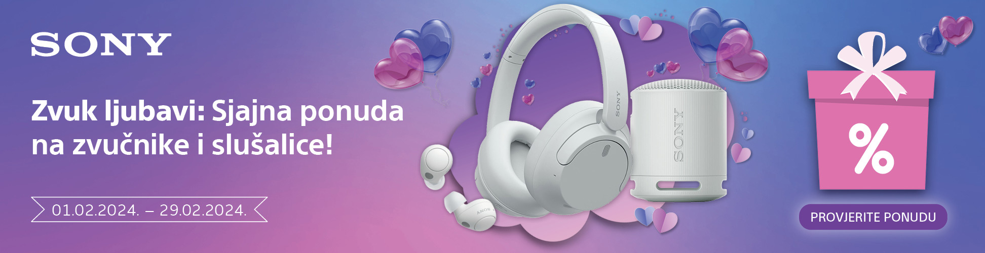 Ovog Valentinova poklonite Sony. Otkrijte vrhunsku ponudu Sony zvučnika i slušalica u periodu od 03.02. do 29.02.2024. ili do isteka zaliha.