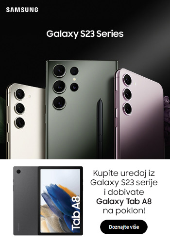 Kupite mobitel iz Samsung Galaxy S23 serije i dobivate Galaxy Tab A8 na poklon Vrijedi od 08.08. do 19.08.2023. ili do isteka zaliha!