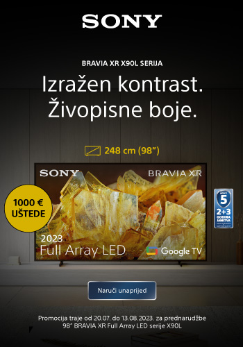 Prednaručite 98'' Sony BRAVIA XR Full Array LED TV serije X90L uz 1000 € uštede Vrijedi od 20.07. do 13.08.2023. ili do isteka zaliha!