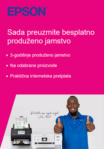 Nastavak promocije 3-godišnjeg produženog jamstva na Epson EcoTank pisače i WorkForce skenere Vrijedi od 01.04.2024. do 31.03.2025.!