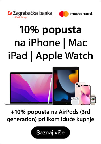 Uz ZABA Mastercard® karticu kupite Apple uređaj s 10% popusta i dobivate vaučer 10% za AirPods (3rd generation) Vrijedi od 04.05. do 09.05.2023. ili do isteka zaliha!