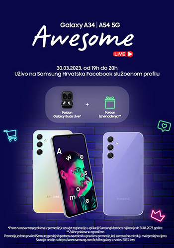 Prednaručite Galaxy A34 | A54 5G uz poklon Galaxy Buds Live slušalice i poklon iznenađenja Vrijedi 30.03.2023. od 19:00h do 20:00h!