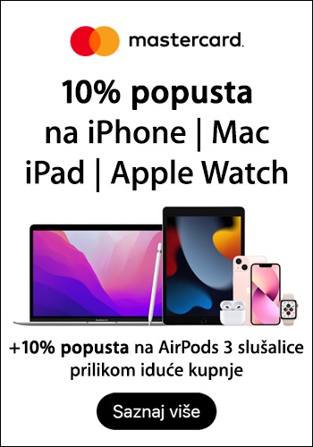 Uz Mastercard® karticu kupite Apple uređaj s 10% popusta i dobivate vaučer 10% za AirPods slušalice Vrijedi od 14.04. do 16.04.2023. ili do isteka zaliha!
