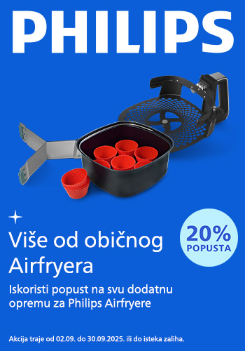 Iskoristi popust na svu dodatnu opremu za Philips Airfryere Vrijedi od 02.09. do 30.09.2025. ili do isteka zaliha!