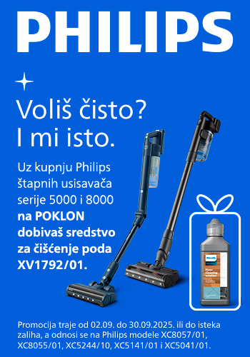 Uz kupnju odabranih Philips štapnih usisavača dobivaš sredstvo za čišćenje podova Vrijedi od 02.09. do 30.09.2025. ili do isteka zaliha!