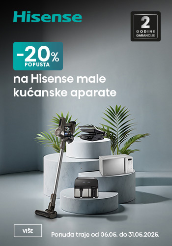 Sjajna ponuda Hisense uređaja bijele tehnike i malih pomoćnika Vrijedi od 06.05. do 31.05.2025. ili do isteka zaliha!