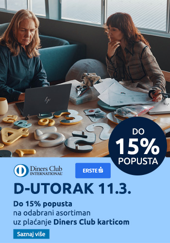 D-UTORAK 11.3. | Do 15% popusta na odabrani asortiman uz plaćanje Diners Club karticom Vrijedi 11.03.2025. do kraja dana ili do isteka zaliha!