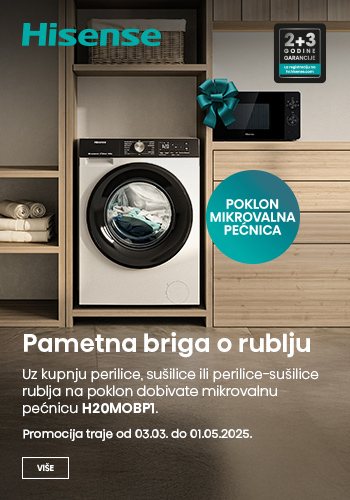 Uz kupnju Hisense perilice, sušilice ili perilice-sušilice rublja na poklon dobivate mikrovalnu pećnicu Vrijedi od 03.03. do 01.05.2025. ili do isteka zaliha!