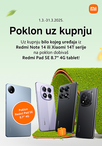 Poklon uz kupnju Redmi Note 14 i ili Xiaomi 14T serije Vrijedi od 03.03. do 31.03.2025. ili do isteka zaliha!