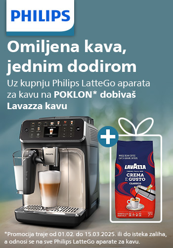 Uz kupnju Philips LatteGo aparata za kavu na poklon dobivate Lavazza kavu Vrijedi od 01.02. do 15.03.2025. ili do isteka zaliha!