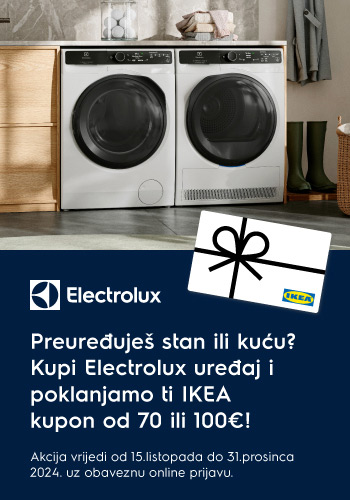Kupite odabrani Electrolux uređaj i dobivate IKEA poklon karticu od 70 ili 100 € Vrijedi od 15.10. do 31.12.2024. ili do isteka zaliha!