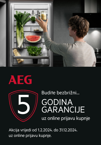Ostvarite 5 godina jamstva na odabrani AEG asortiman Vrijedi od 01.02. do 31.12.2024. ili do isteka zaliha.