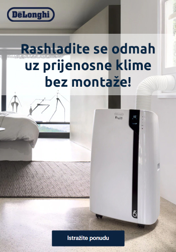 Rashladite se odmah uz De'Longhi prijenosne klime bez montaže Vrijedi od 15.05. do 31.07.2024. ili do isteka zaliha!