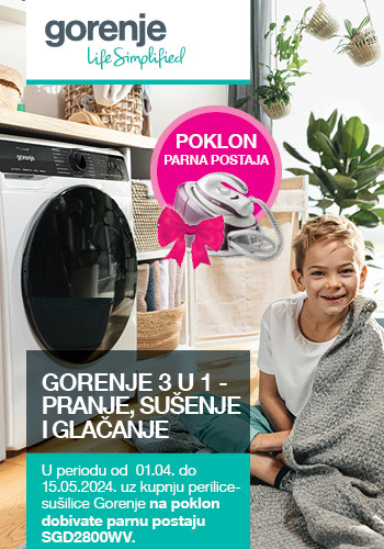 Uz kupnju odabrane perilice-sušilice Gorenje na poklon dobivate parnu postaju Vrijedi od 01.04. do 15.05.2024. ili do isteka zaliha!
