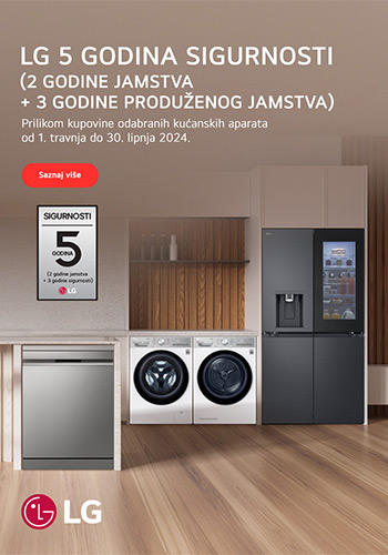 Učinite svoj život jednostavnijim LG kućanskim aparatima uz 5 godina jamstva Vrijedi od 01.04. do 30.06.2024.!