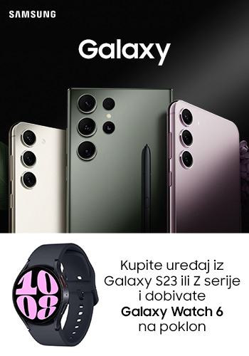 Kupite mobitel iz Samsung Galaxy S23 ili Z serije i dobivate Galaxy Watch 6 na poklon Vrijedi od 20.11. do 27.11.2023. ili do isteka zaliha!