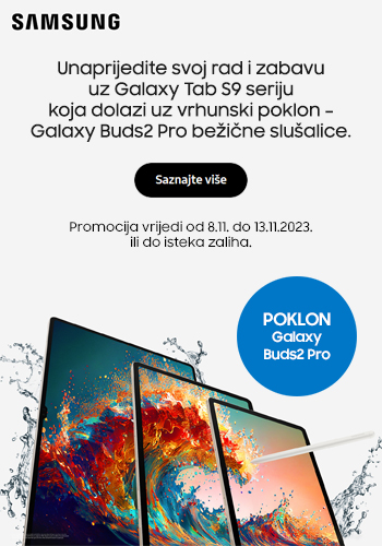 Kupite uređaj iz Samsung Galaxy Tab S9 serije i dobivate Galaxy Buds2 Pro na poklon Vrijedi od 08.11. do 13.11.2023. ili do isteka zaliha!