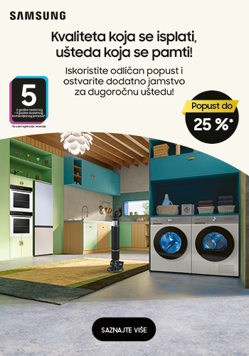 Iskoristite odličan popust i ostvarite dodatno jamstvo na odabrani asortiman Samsung bijele tehnike Vrijedi od 02.10. do 28.10.2023. ili do isteka zaliha!