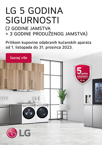 Učinite svoj život jednostavnijim uz 5 godina sigurnosti na odabrane LG kućanske aparate Vrijedi od 01.10. do 31.12.2023.!