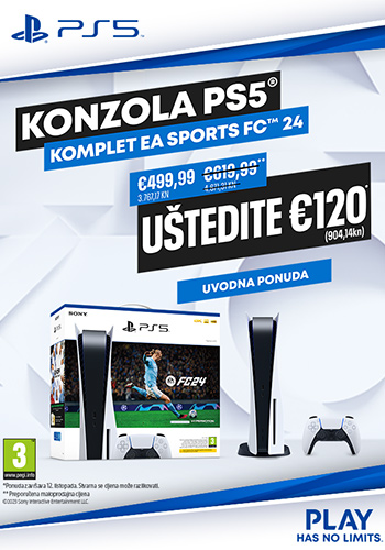 Iskoristite jedinstvenu priliku i kupite komplet konzolu PlayStation 5 EA Sports FC 24 po promotivnoj cijeni Vrijedi od 29.09. do 12.10.2023. ili do isteka zaliha!