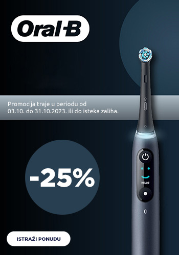 Ostvarite 25% popusta na odabrane Oral-B električne četkice za zube Vrijedi od 03.10. do 31.10.2023. ili do isteka zaliha!