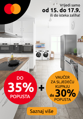 Uz Mastercard® karticu ostvarite do 35% popusta na bijelu tehniku i popust za sljedeću kupnju Vrijedi od 15.09. do 17.09.2023. ili do isteka zaliha!