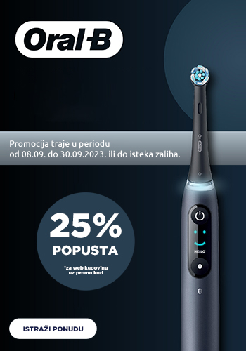 Ostvarite 25% popusta na odabrani asortiman Oral-B električnih četkica za zube Vrijedi od 08.09. do 30.09.2023. ili do isteka zaliha!